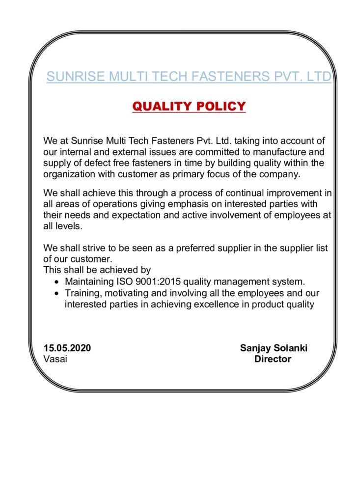 - 1st Off Inspection : After the machine is set for the required products 5 pieces are checked and are being approved by the supervisor.